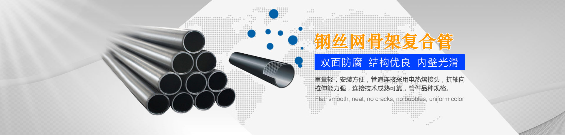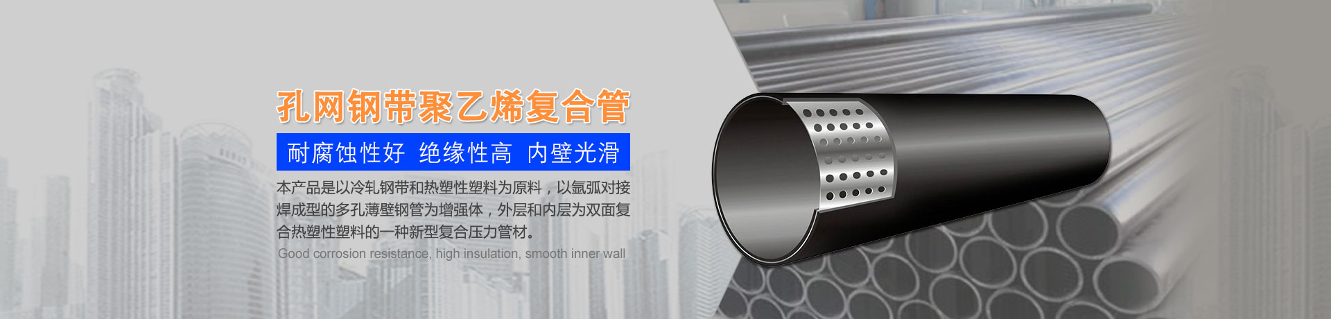 我們主要生產(chǎn)銷(xiāo)售:鋼絲網(wǎng)骨架復(fù)合管、鋼絲網(wǎng)骨架聚乙烯復(fù)合管、孔網(wǎng)鋼帶聚乙烯復(fù)合管、鋼骨架聚乙烯塑料復(fù)合管、電熔管件、HDPE中空壁纏繞管、HDPE內(nèi)肋增強(qiáng)螺旋波紋管、HDPE結(jié)構(gòu)壁增強(qiáng)B型管等一系列產(chǎn)品。復(fù)合管以其特有的防腐蝕、耐磨、耐高溫、抗嚴(yán)寒、耐壓、抗蠕變、穩(wěn)定性好、安裝方便等特點(diǎn),逐步取代各類(lèi)金屬管件和塑料管件,被應(yīng)用于消防、石油、化工、供水、采礦、海水輸送等領(lǐng)域...